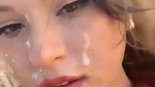 Sandy sucking her tits